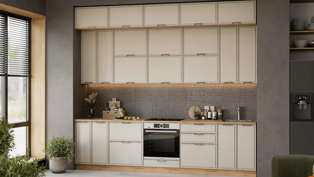 В стоимость не включено: Стеновая панель, столешница, доводчики, бытовая техника, мойка, смеситель, аксессуары