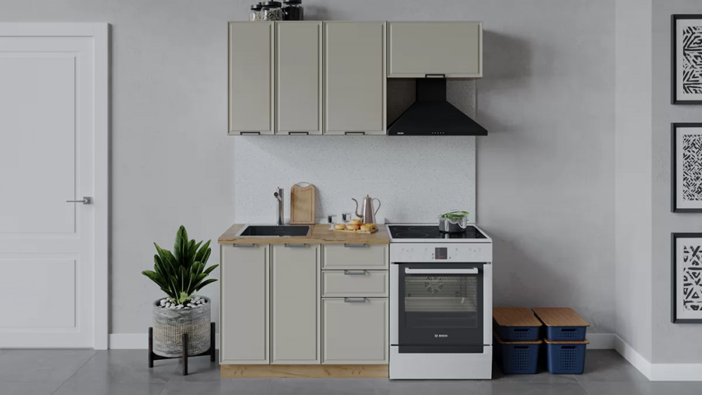 Кухонный гарнитур «Белладжио» длиной 160 см Дуб Крафт золотой, Софт панакота G25834 в Тюмени