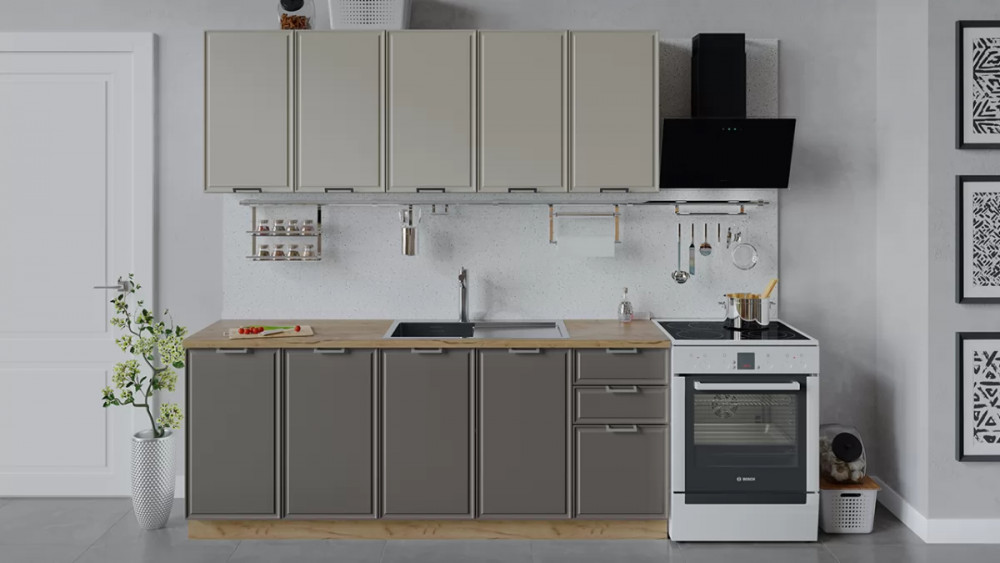 Кухонный гарнитур «Белладжио» длиной 200 см Дуб Крафт золотой, Софт панакота, Софт капучино в Тюмени