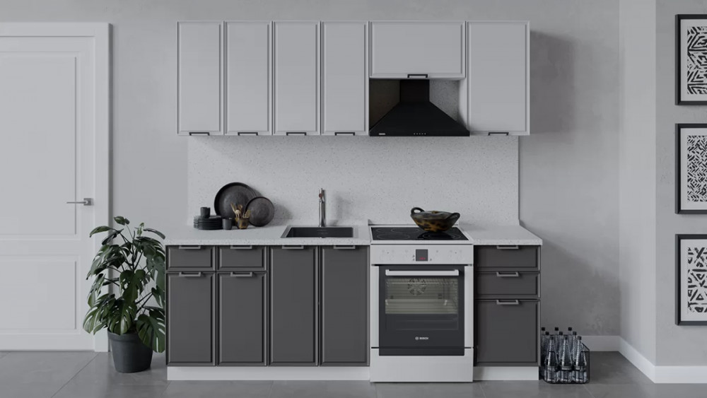 Кухонный гарнитур «Белладжио» длиной 220 см Белый, Фон белый, Софт графит в Тюмени