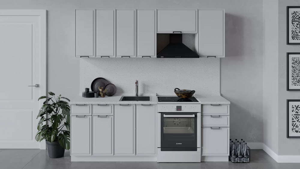 В стоимость не включено: Стеновая панель, столешница, доводчики, бытовая техника, мойка, смеситель, аксессуары