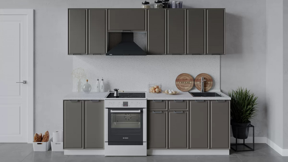 В стоимость не включено: Стеновая панель, столешница, доводчики, бытовая техника, мойка, смеситель, аксессуары