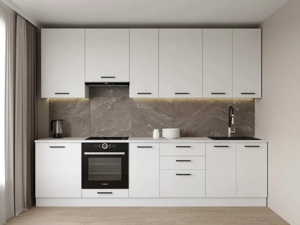 Кухонный гарнитур Белый Глянец-3000 (верх 950мм) МДФ столешница 38 мм в Тюмени