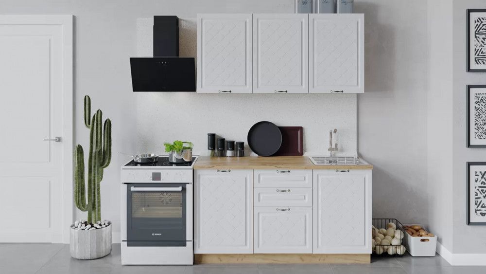 В стоимость не включено: Стеновая панель, столешница, доводчики, бытовая техника, мойка, смеситель, аксессуары