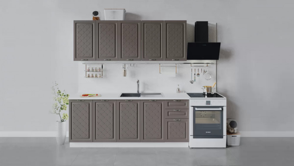 В стоимость не включено: Стеновая панель, столешница, доводчики, бытовая техника, мойка, смеситель, аксессуары