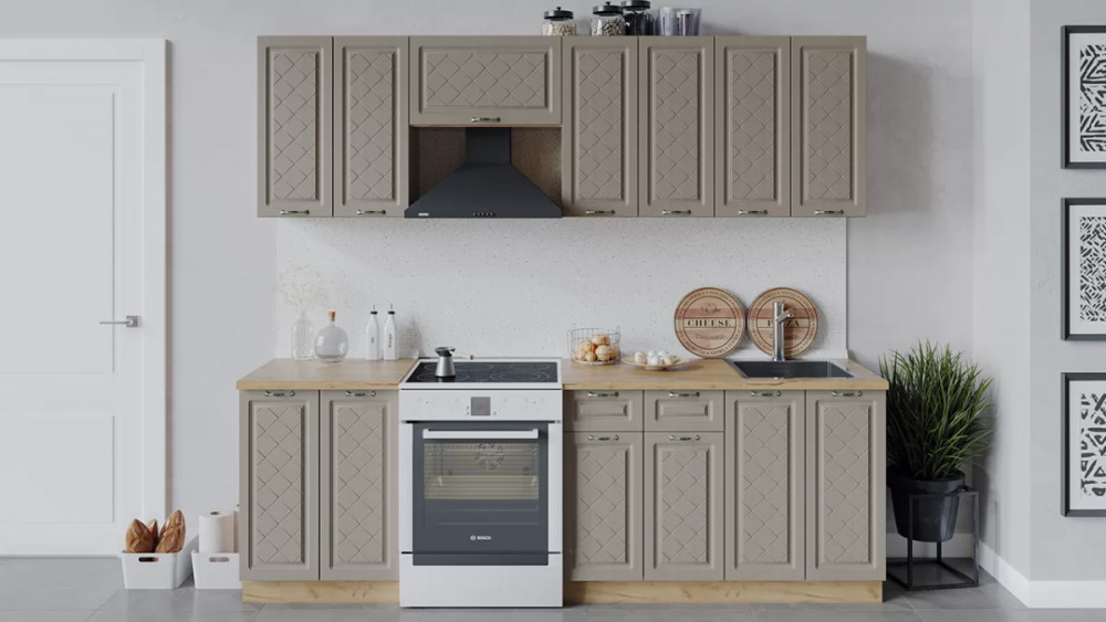 В стоимость не включено: Стеновая панель, столешница, доводчики, бытовая техника, мойка, смеситель, аксессуары