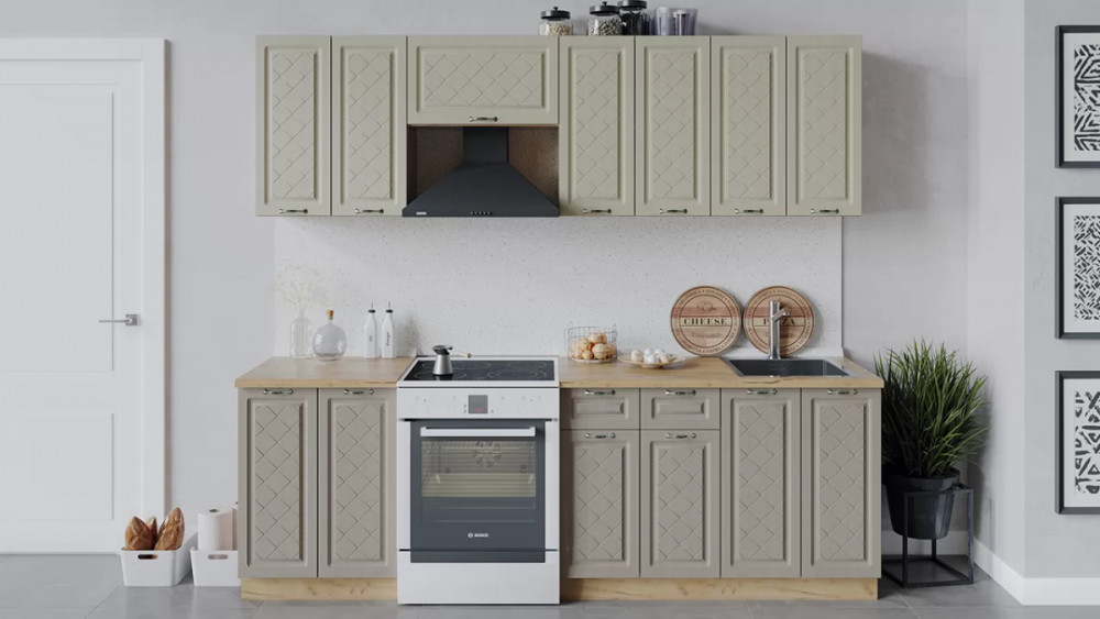 В стоимость не включено: Стеновая панель, столешница, доводчики, бытовая техника, мойка, смеситель, аксессуары