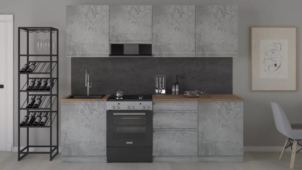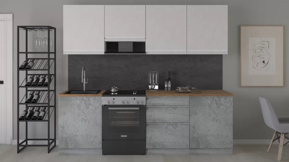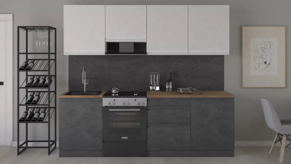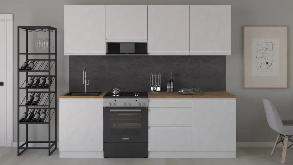 Габаритный размер готового набора модулей с учетом газовой плиты на 60см: 240 см.