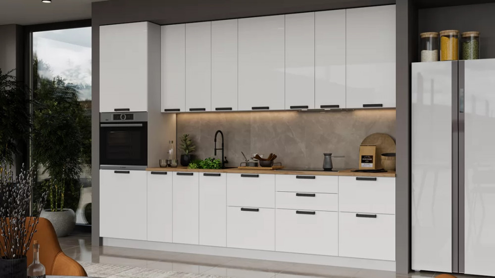 В стоимость не включено: Стеновая панель, столешница, доводчики, бытовая техника, мойка, смеситель, аксессуары