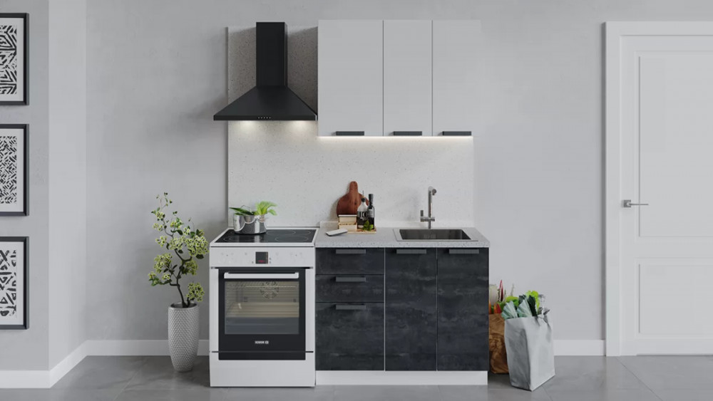 Кухонный гарнитур «Детройт» длиной 100 см Белый/Белый глянец/Угольный камень в Тюмени
