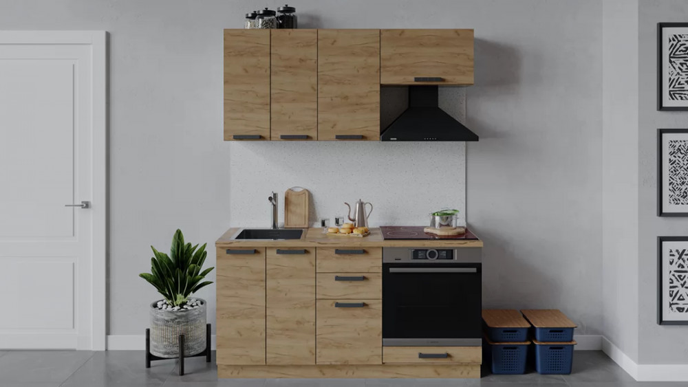 Кухонный гарнитур «Детройт» длиной 160 см со шкафом НБ Дуб крафт золотой/Дуб Крафт золотой в Тюмени