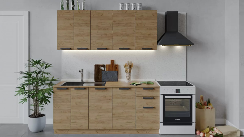 Кухонный гарнитур «Детройт» длиной 180 см Дуб крафт золотой/Дуб Крафт золотой в Тюмени