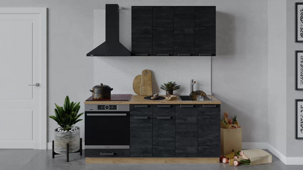 Кухонный гарнитур «Детройт» длиной 180 см со шкафом НБ Дуб крафт золотой/Угольный Камень в Тюмени