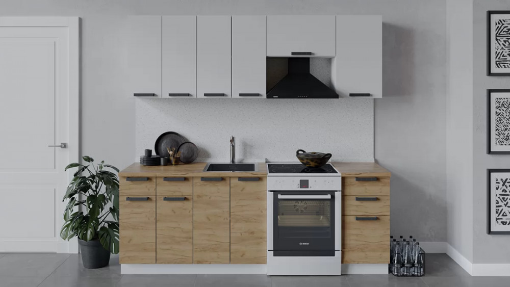 Габаритный размер готового набора модулей с учетом газовой плиты на 60 см: 2 200