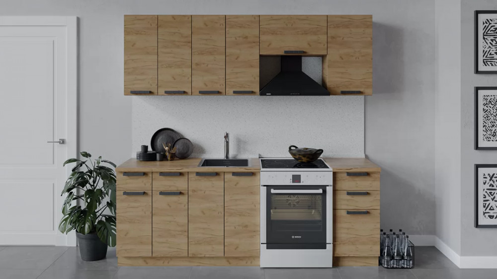 Габаритный размер готового набора модулей с учетом газовой плиты на 60 см: 2 200
