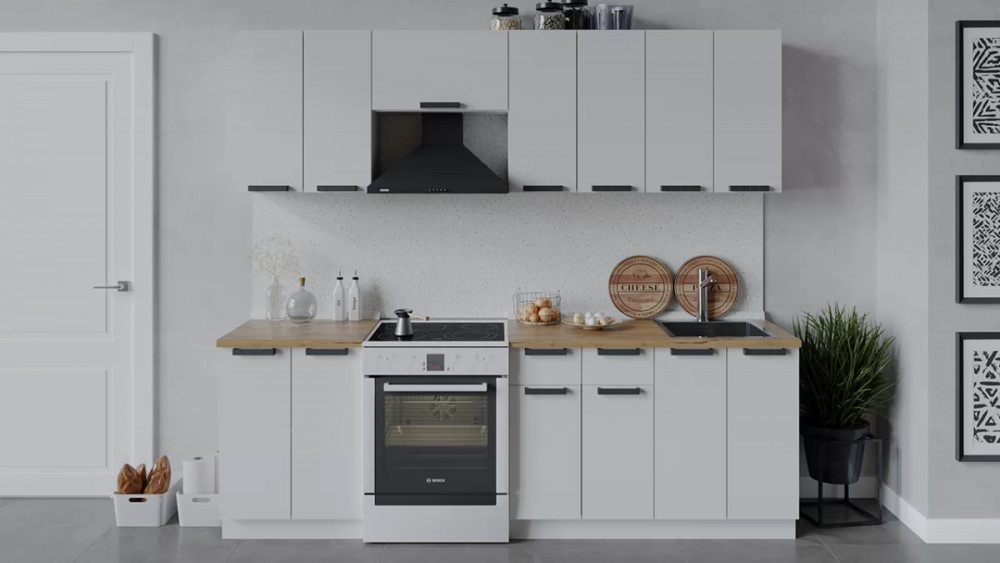 В стоимость не включено: Стеновая панель, столешница, доводчики, бытовая техника, мойка, смеситель, аксессуары