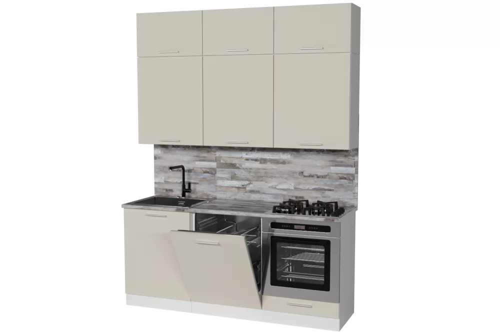 Мойки, смесители, посудосушители, варочные панели, духовые шкафы, плиты, вытяжки в комплекты гарнитуров не входят.