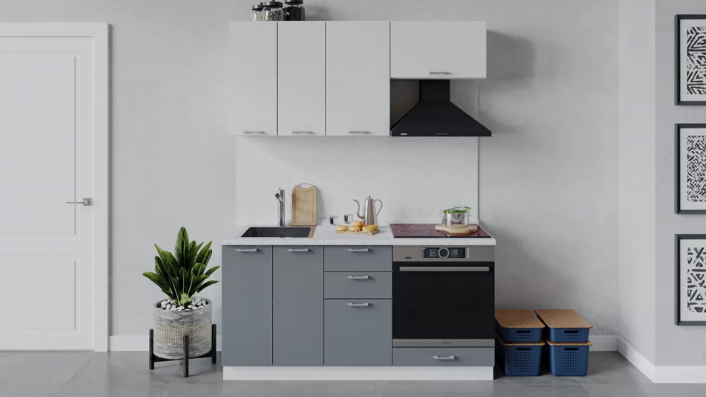 Кухонный гарнитур «Габриэлла» длиной 160 см со шкафом НБ Белый/Сноу/Титан в Тюмени