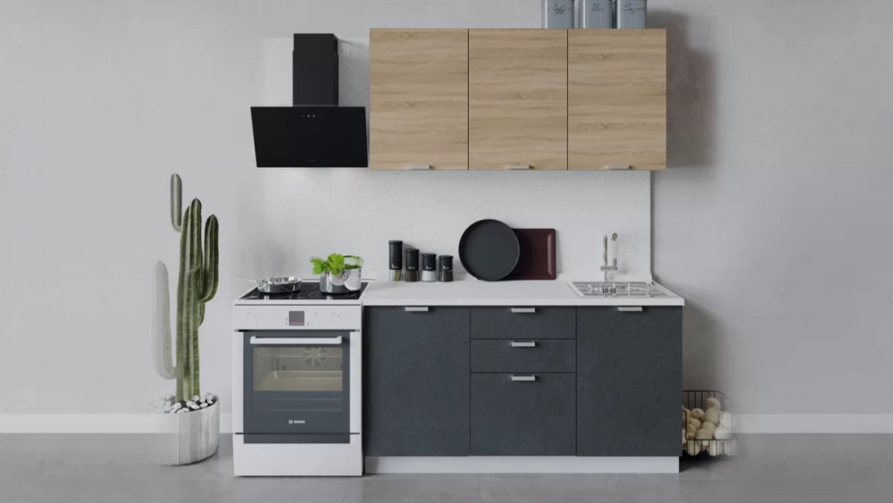 Габаритный размер готового набора модулей с учетом газовой плиты на 60 см: 2 100