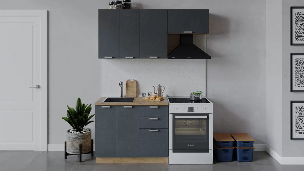 Кухонный гарнитур «Гранита» длиной 160 см Дуб крафт золотой/Бетон графит G26394 в Тюмени