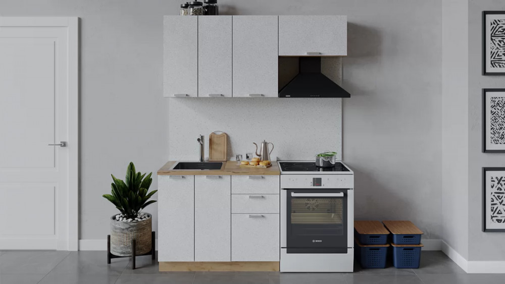 Кухонный гарнитур «Гранита» длиной 160 см Дуб крафт золотой/Бетон снежный G27253 в Тюмени