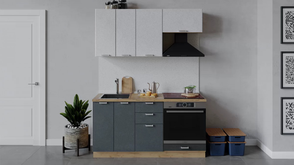 Кухонный гарнитур «Гранита» длиной 160 см со шкафом НБ Дуб крафт золотой/Бетон снежный/Бетон графит в Тюмени