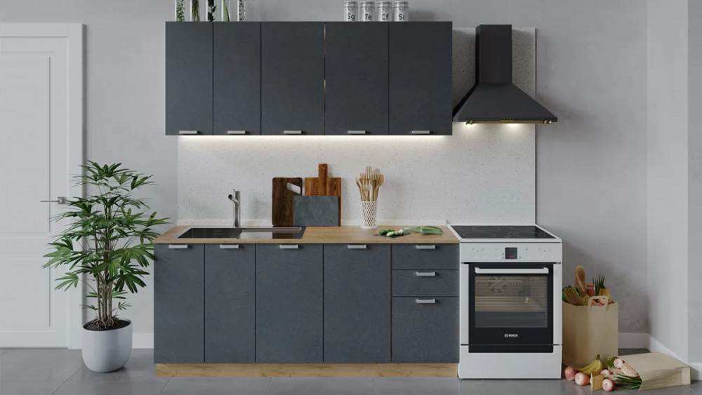 Кухонный гарнитур «Гранита» длиной 180 см Дуб крафт золотой/Бетон графит в Тюмени