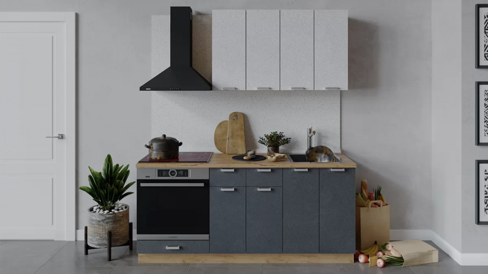 Кухонный гарнитур «Гранита» длиной 180 см со шкафом НБ Дуб крафт золотой/Бетон снежный/Бетон графит в Тюмени