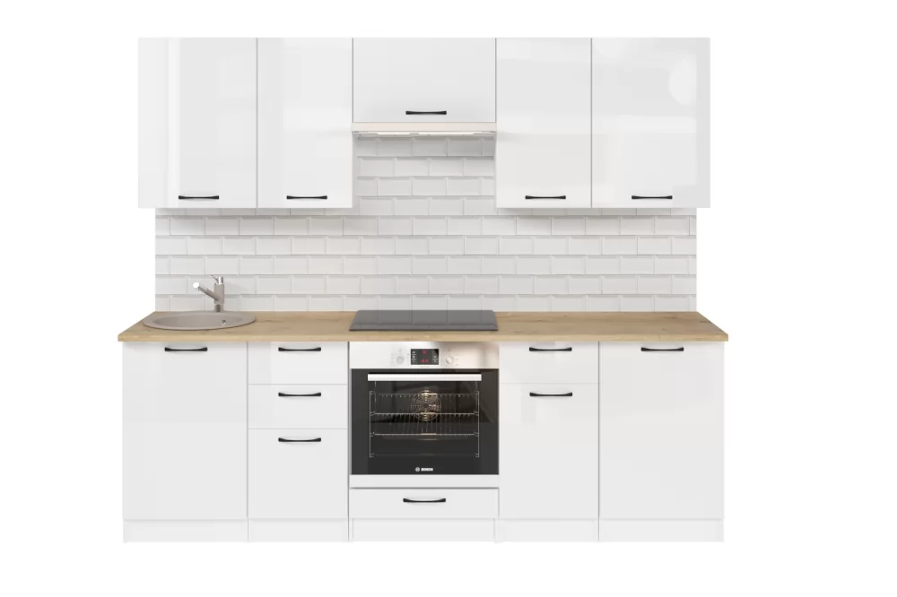 Мойки, смесители и посудосушители в комплекты гарнитуров не входят.