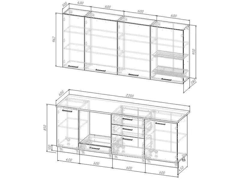 Высота верхних модулей (мм): 950