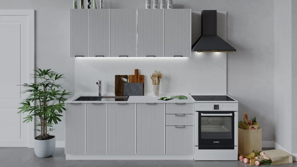 В стоимость не включено: Стеновая панель, столешница, доводчики, бытовая техника, мойка, смеситель, аксессуары