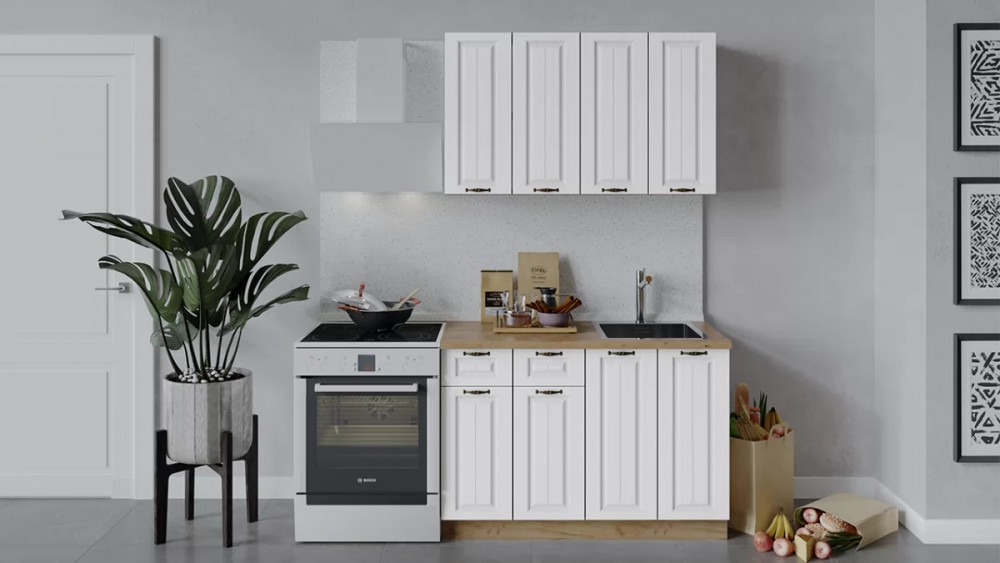 В стоимость не включено: Стеновая панель, столешница, доводчики, бытовая техника, мойка, смеситель, аксессуары