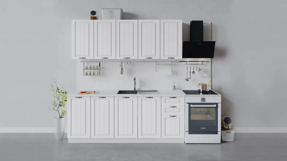 В стоимость не включено: Стеновая панель, столешница, доводчики, бытовая техника, мойка, смеситель, аксессуары
