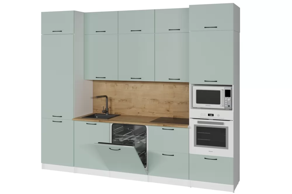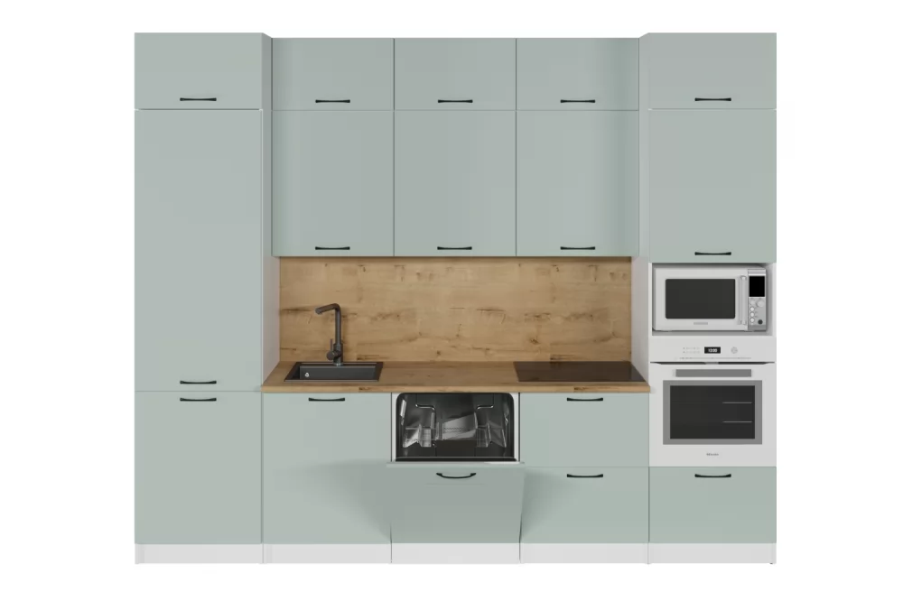 Мойки, смесители, посудосушители, варочные панели, духовые шкафы, плиты, вытяжки в комплекты гарнитуров не входят.