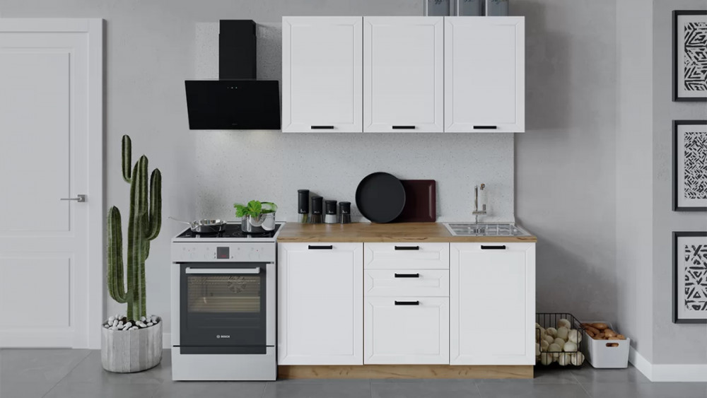 В стоимость не включено: Стеновая панель, столешница, доводчики, бытовая техника, мойка, смеситель, аксессуары
