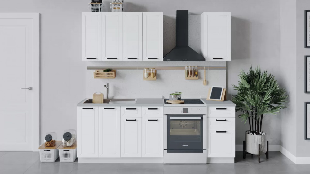 В стоимость не включено: Стеновая панель, столешница, доводчики, бытовая техника, мойка, смеситель, аксессуары