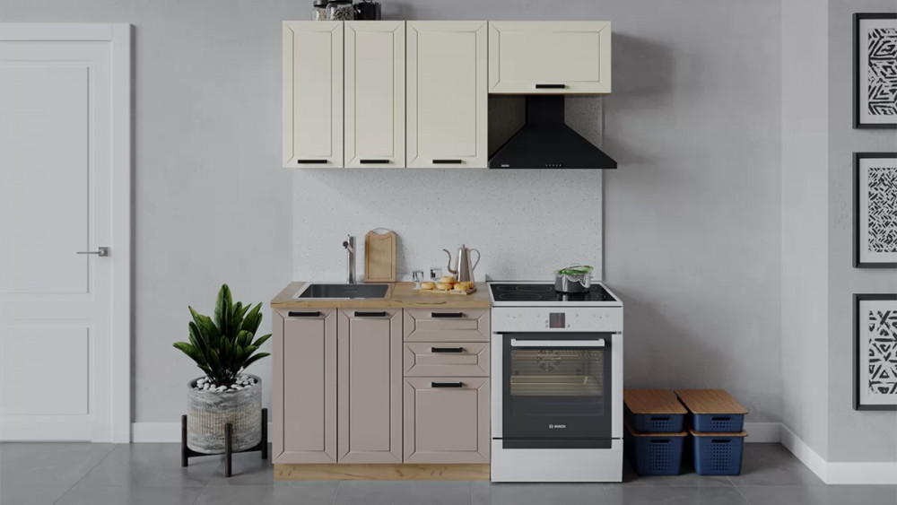Кухонный гарнитур «Лорас» длиной 160 см Дуб крафт золотой/Холст брюле/Холст латте G26716 в Тюмени