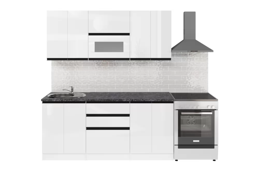 Мойки, смесители и посудосушители в комплекты гарнитуров не входят.