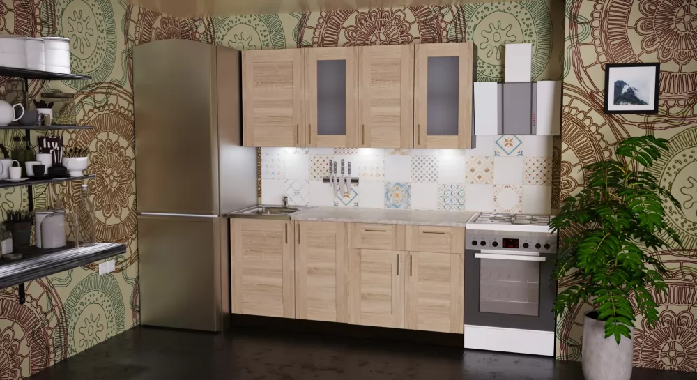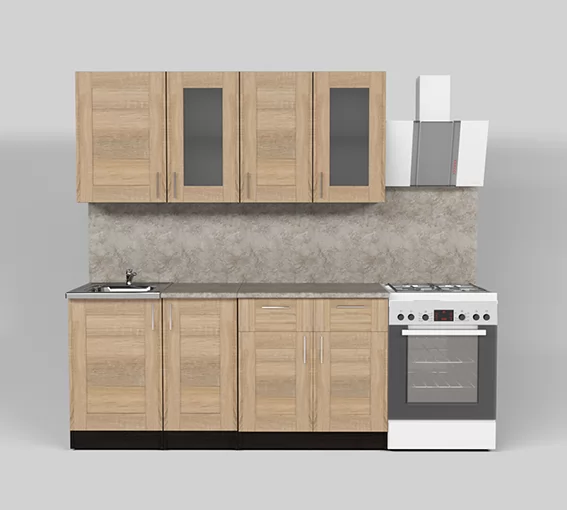Кухонный гарнитур Ника демо из ЛДСП в модном цвете "Квадро дуб сонома" впишется в современный дизайн интерьера. Подойдет как для частного дома, так и для небольшой квартиры. Напольные и подвесные шкафы позволят разместить всю кухонную утварь. Гарнитур состоит из набора шкафов, которые органично комбинируются между собой. Ящики, полки, навесные шкафы, тумбы и пеналы можно менять местами, создавая практичное рабочее пространство.