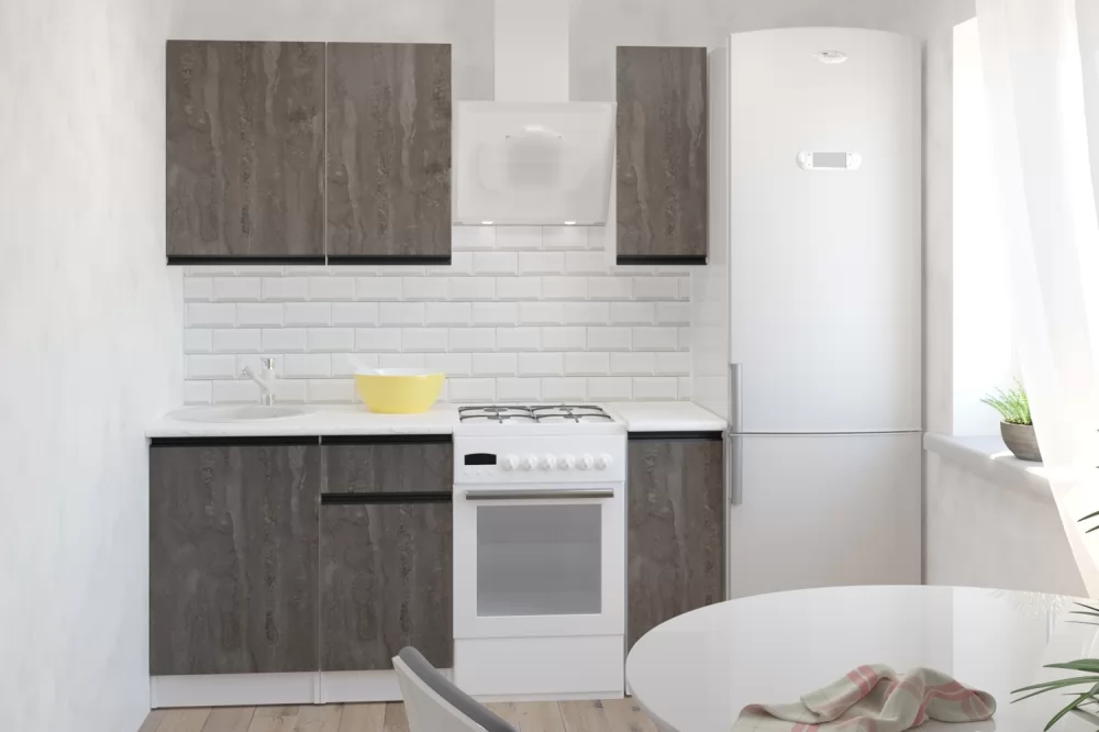 Прямые готовые кухни рациональны для маленьких квартир. При прямой планировке кухни важно предусмотреть место для холодильника и учесть его габариты. Если ваша кухня объединена с гостиной, или же настолько просторная, что позволяет сделать полноценную обеденную зону для большой семьи, то смело выбирайте линейную конфигурацию кухни.