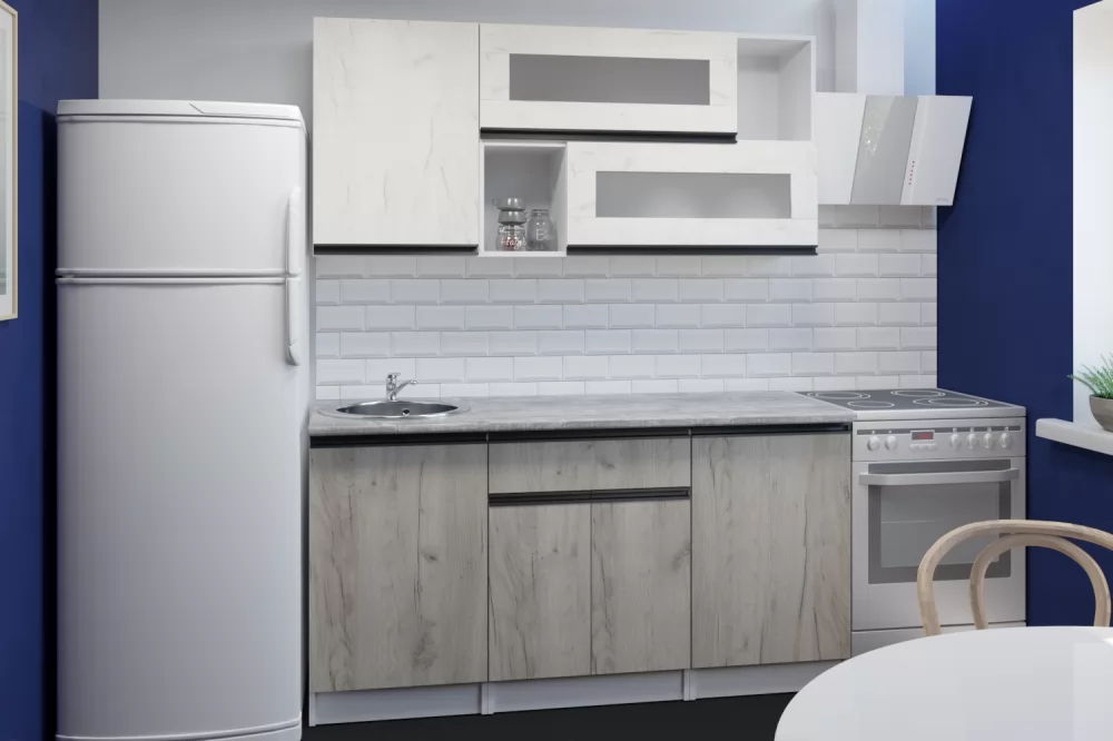 Прямые готовые кухни рациональны для маленьких квартир. При прямой планировке кухни важно предусмотреть место для холодильника и учесть его габариты. Если ваша кухня объединена с гостиной, или же настолько просторная, что позволяет сделать полноценную обеденную зону для большой семьи, то смело выбирайте линейную конфигурацию кухни.