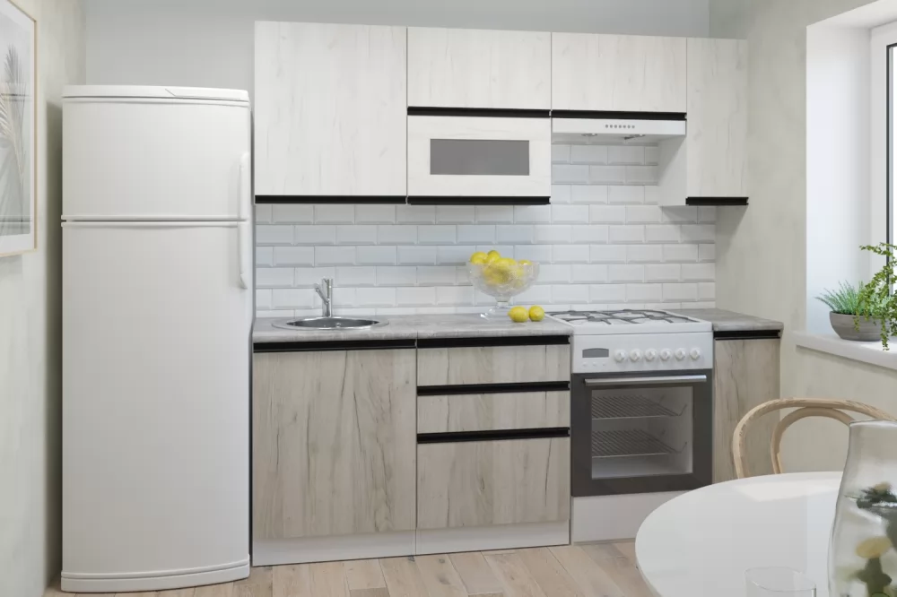 Прямые готовые кухни рациональны для маленьких квартир. При прямой планировке кухни важно предусмотреть место для холодильника и учесть его габариты. Если ваша кухня объединена с гостиной, или же настолько просторная, что позволяет сделать полноценную обеденную зону для большой семьи, то смело выбирайте линейную конфигурацию кухни.