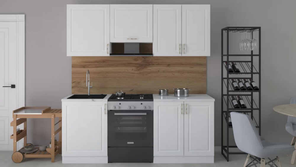 Габаритный размер готового набора модулей с учетом газовой плиты на 60см: 200 см.