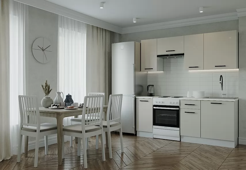 - Столешницы цельные со скруглением по переднему краю, пластиковым покрытием и силиконовый каплесборник (защищает фасады нижних модулей от попадания влаги и разбухания);