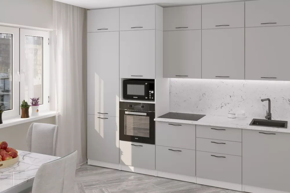 Мойки, смесители и посудосушители в комплекты гарнитуров не входят.