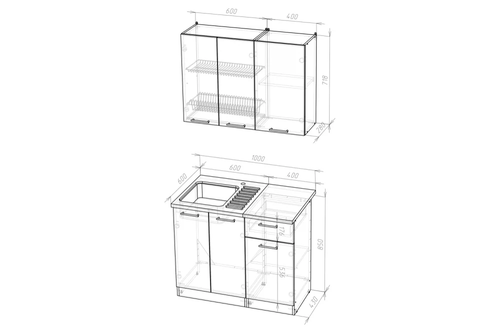 | Размеры (ШхГхВ) | 1000х600х850/720 мм |