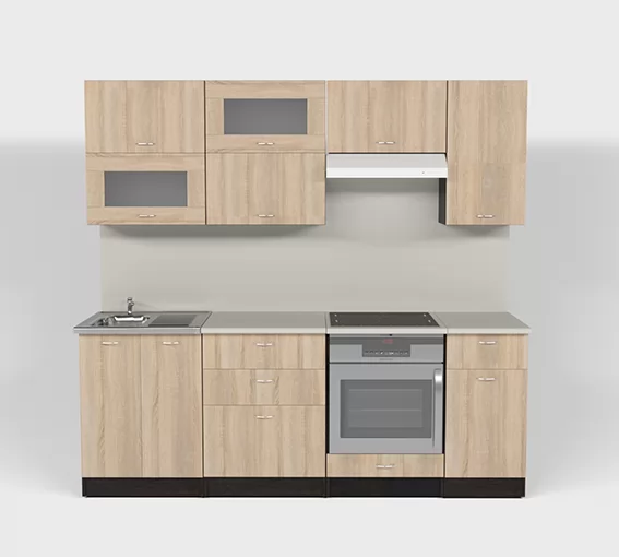 Кухонный гарнитур Симона компакт из ЛДСП в модном цвете "Дуб сонома" впишется в современный дизайн интерьера. Подойдет как для частного дома, так и для небольшой квартиры. Напольные и подвесные шкафы позволят разместить всю кухонную утварь. Гарнитур состоит из набора шкафов, которые органично комбинируются между собой. Ящики, полки, навесные шкафы, тумбы и пеналы можно менять местами, создавая практичное рабочее пространство.