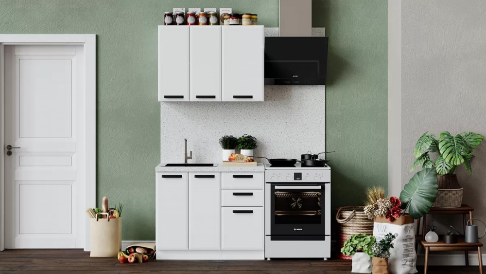 Кухонный гарнитур «Тиана» длиной 100 см Белый, Белый супермат в Тюмени