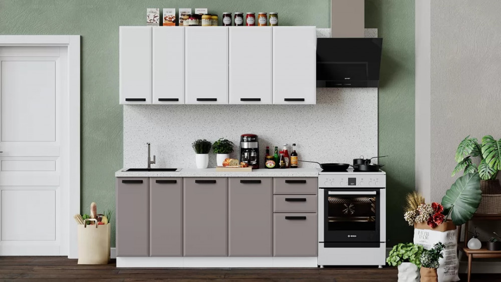 Кухонный гарнитур «Тиана» длиной 180 см Белый, Белый супермат, Мокко супермат в Тюмени