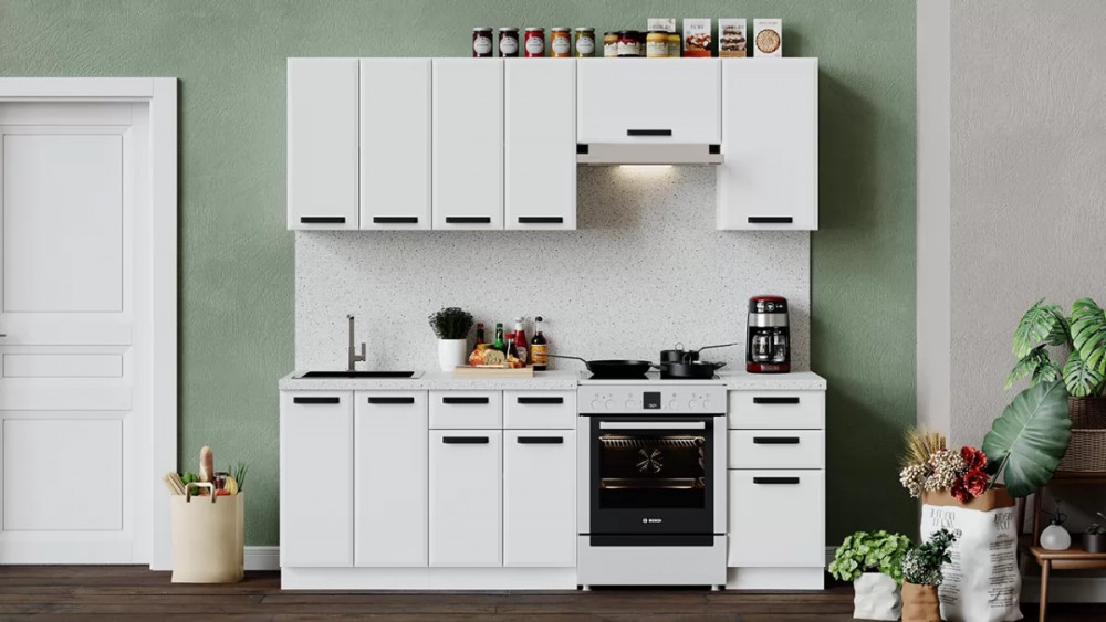 Кухонный гарнитур «Тиана» длиной 220 см Белый, Белый супермат в Тюмени